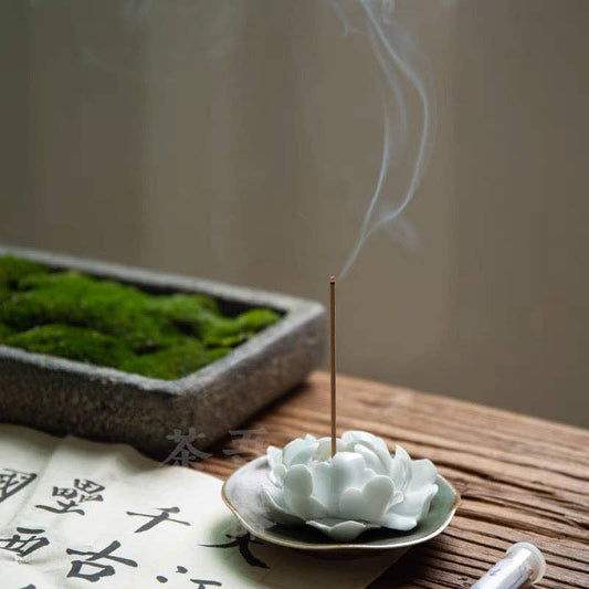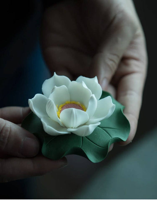 Gohobi Handmade Ceramic White Lotus Incense Stick Holder