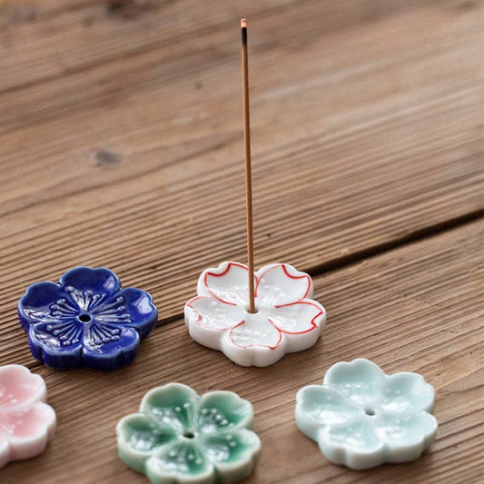 Gohobi Handmade Ceramic Cherry Blossom Incense Stick Holder