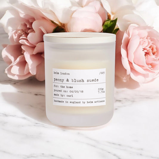 Peony & Blush Suede Candle – 220g Soy Wax by Helm London